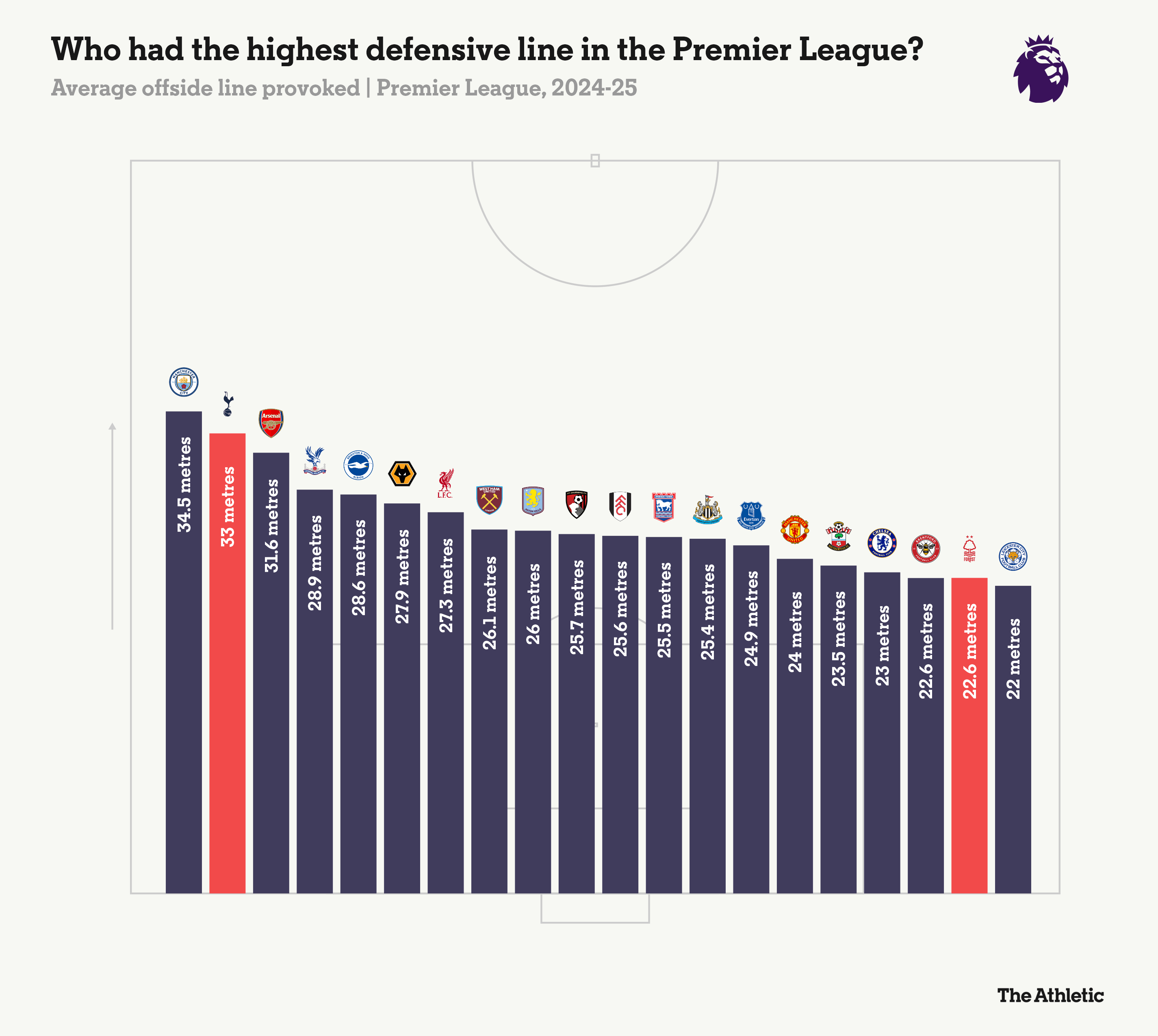 努诺以防守为基础的理念适合球队并带来了成果,但很少有球队能够持续挑战这种风格的足球。下图显示了森林上赛季在比赛中放弃了多少控球区域。